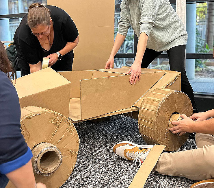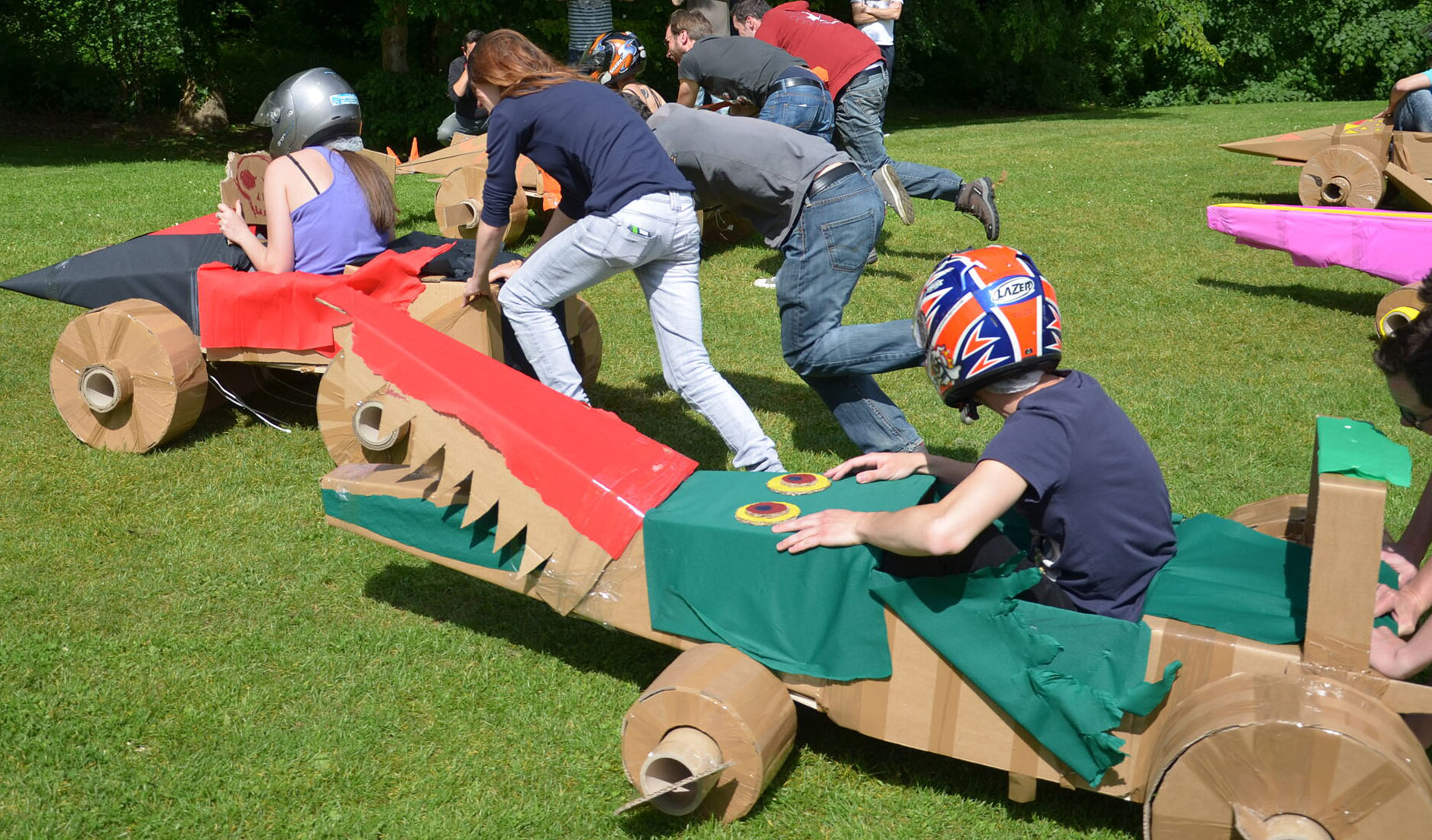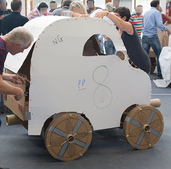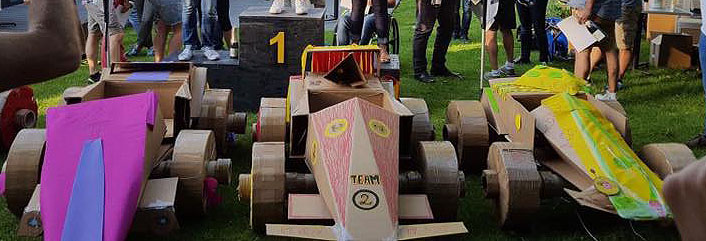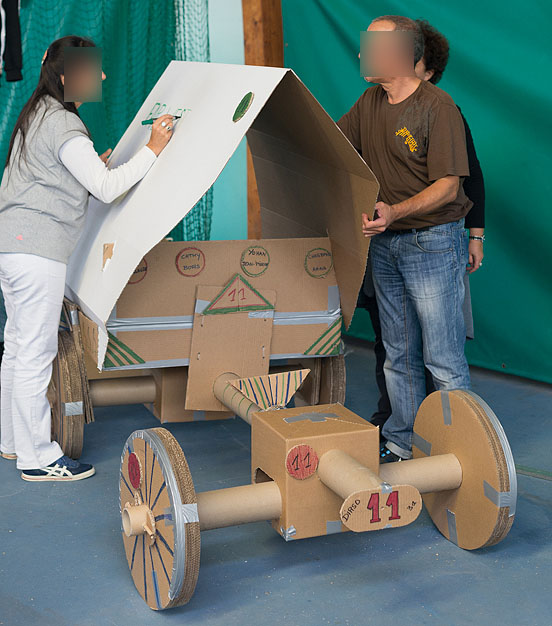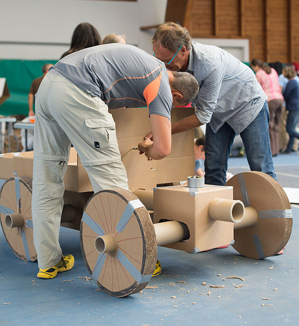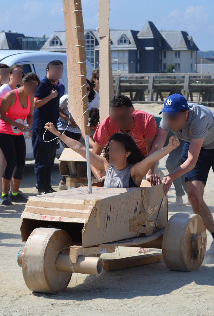 Votre bolide doit pouvoir transporter 1 personne sur un parcours préétabli et porter haut les couleurs de son équipe. Au-delà du défi technique, votre véhicule devra être esthétique, ergonomique et fonctionnel. Le test de conduite est précédé d’un concours d’élégance… Créativité, imagination, coordination, énergie, l’activité développe toutes les qualités du travail en équipe.